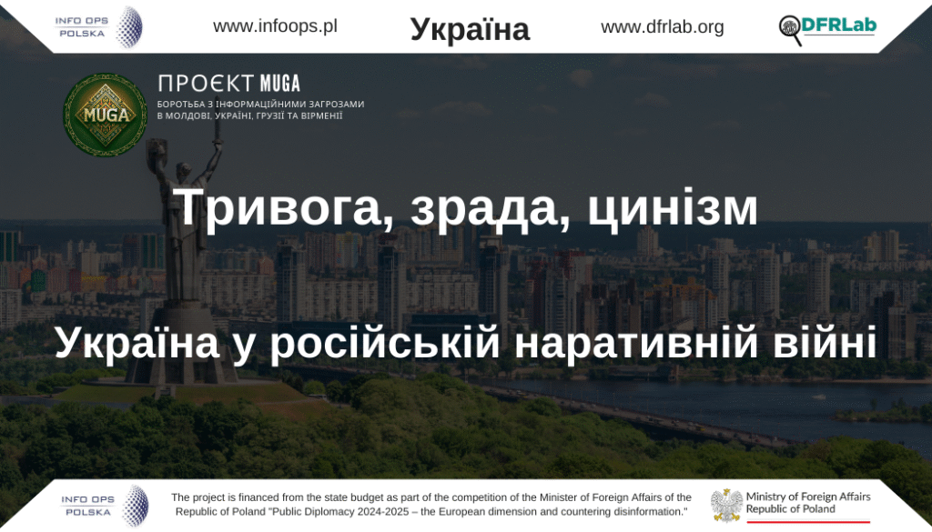 Проєкт MUGA – Україна: Публікація створена на основі поточного моніторингу інформаційного середовища України, що здійснюється в рамках проєкту MUGA – модуль II («Цифрові розслідування та аналіз операцій впливу на безпеку інформаційного середовища суспільств Молдови, України, Грузії та Вірменії»). Проєкт реалізується Фундацією INFO OPS Польща та DFRLab (Atlantic Council). Діяльність фінансується з державного бюджету в рамках конкурсу Міністра закордонних справ Республіки Польща «Громадська дипломатія 2024–2025 – європейський вимір та протидія дезінформації». Публікація виражає виключно погляди авторів і не може ототожнюватися з офіційною позицією Міністерства закордонних справ Республіки Польща.
