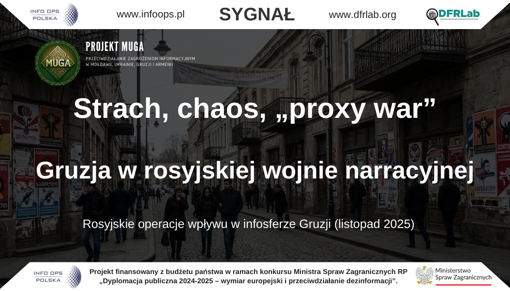 Publikacja została zrealizowana w ramach projektu MUGA: Przeciwdziałanie dezinformacji i analiza zagrożeń dla bezpieczeństwa informacyjnego w Mołdawii, Ukrainie, Gruzji i Armenii.