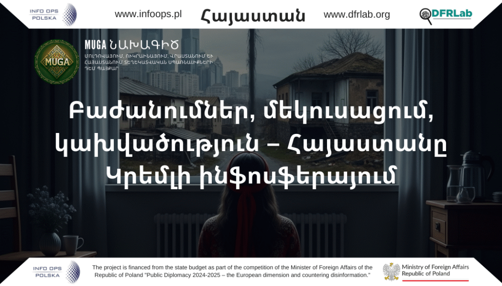 MUGA նախագիծ – Հայաստան: Հրատարակությունը հիմնված է Հայաստանի տեղեկատվական միջավայրի շարունակական մոնիտորինգի վրա, որն իրականացվում է MUGA նախագծի՝ մոդուլ II («Թվային հետաքննություններ և ազդեցության գործողությունների վերլուծություն՝ ի շահ Մոլդովայի, Ուկրաինայի, Վրաստանի և Հայաստանի հասարակությունների տեղեկատվական անվտանգության») շրջանակում։