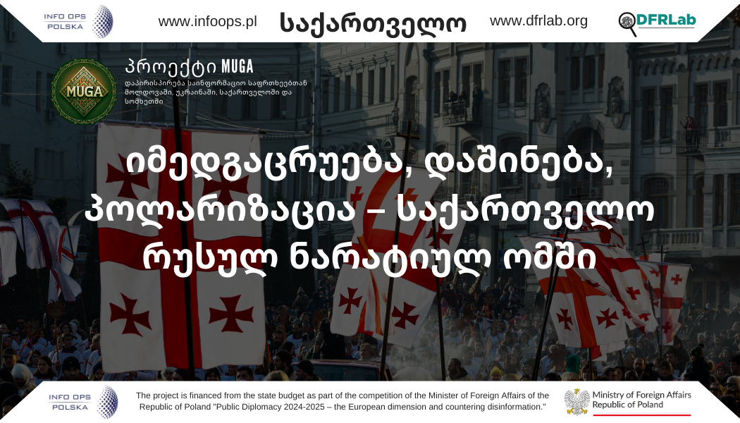 პროექტი MUGA – საქართველო: პუბლიკაცია შექმნილია საქართველოს საინფორმაციო გარემოს მიმდინარე მონიტორინგის საფუძველზე, რომელიც ხორციელდება პროექტ MUGA-ს – მოდული II („ციფრული გამოძიებები და გავლენის ოპერაციების ანალიზი მოლდოვას, უკრაინის, საქართველოს და სომხეთის საზოგადოებების საინფორმაციო გარემოს უსაფრთხოებისთვის“) – ფარგლებში.