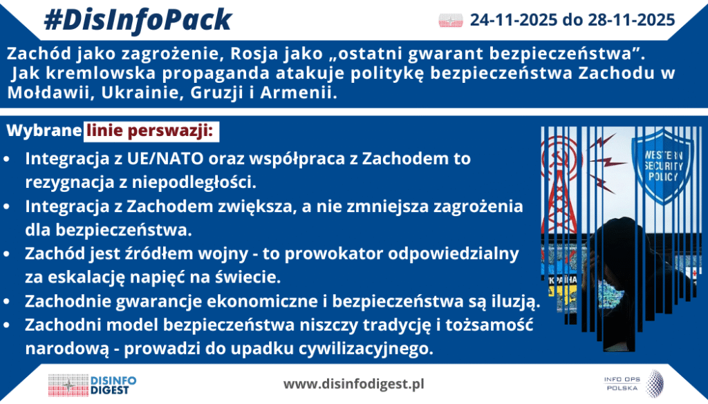 W Gruzji przekaz jest podobny, choć oparty na innych przykładach. UE ma „wymagać”, „oceniać” i „karać”, ale – jak sugeruje propaganda – nie ma zamiaru przyjąć kraju do wspólnoty. W ten sposób buduje się obraz Zachodu jako partnera, który narzuca koszty, nie oferując realnych korzyści bezpieczeństwa.